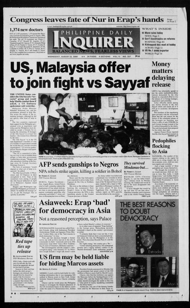 August 23, 2000: US, Malaysia offer to join fight vs Sayyaf by Philippine Daily Inquirer August 23, 2024 August 23, 2000. 0 Comments