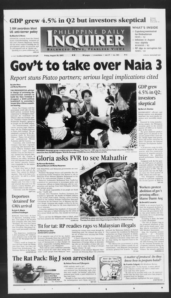 August 30, 2002: Gov’t to take over Naia 3 by Philippine Daily Inquirer August 30, 2024 August 30, 2002. 0 Comments