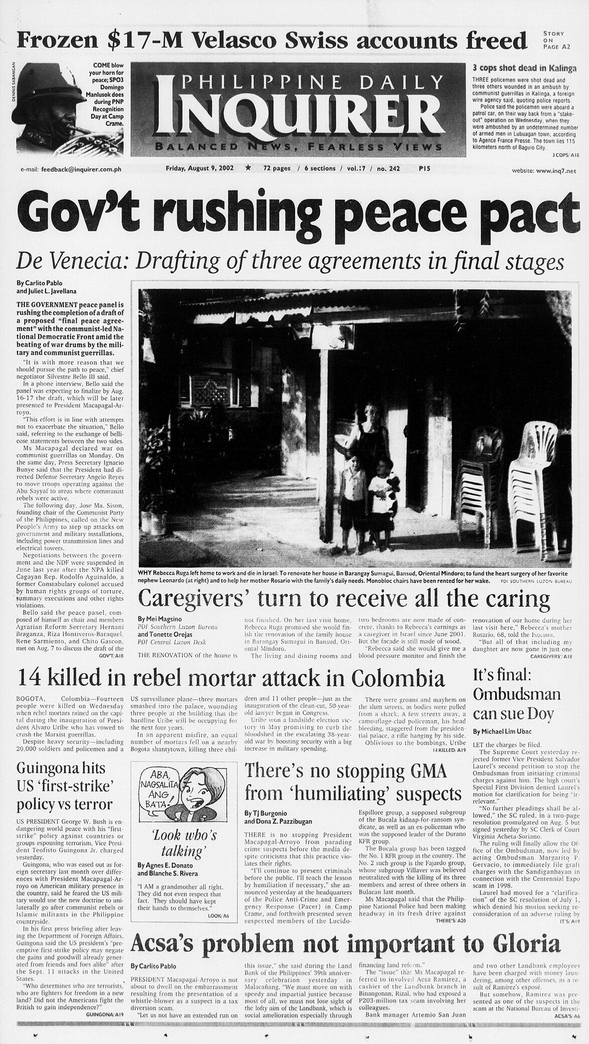 August 9, 2002: Gov’t rushing peace pact