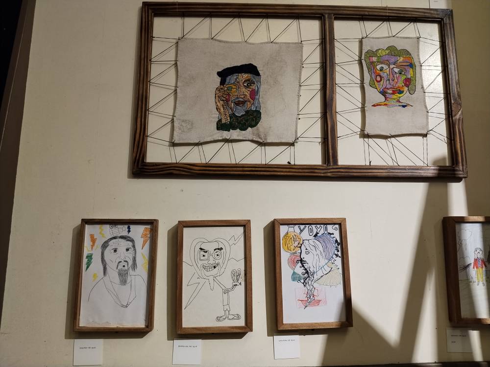 There is a huge ink portrait of 82-year-old Kidlat that he discovered online when it was posted by a former art student, a unique painting of the artist that used Kidlat’s own braided white locks, a quilt-like embroidery of the Baguio-born artist and drawings by his grandchildren Kalipay, Binnulan, Kalinaw and Amihan de Guia.