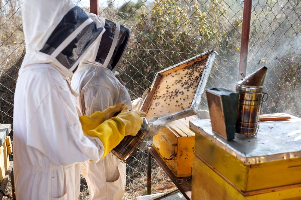 The project supports 49 farmers, whose plots are surrounded by 15 connected hives.