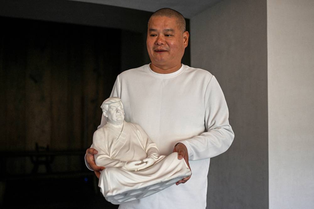 XIAMEN, CHINA—Donald Trump is not typically known for his calm or reserve, but in a craftsman’s workshop in rural China the US president-elect sits in divine contemplation.