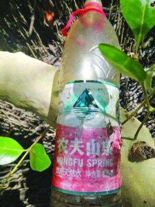 DASOL, PANGASINAN—A group of volunteers conducting a cleanup in this town’s mangrove forests on Sept. 24 was shocked to discover plastic water and tea bottles with foreign labels scattered throughout the protected area.