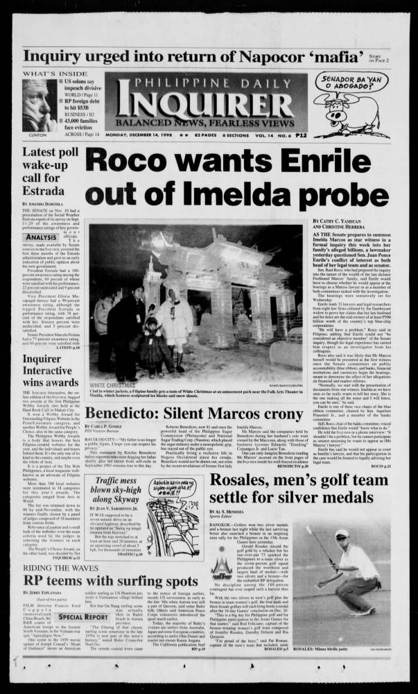 December 14, 1998: Roco wants Enrile out of Imelda probe