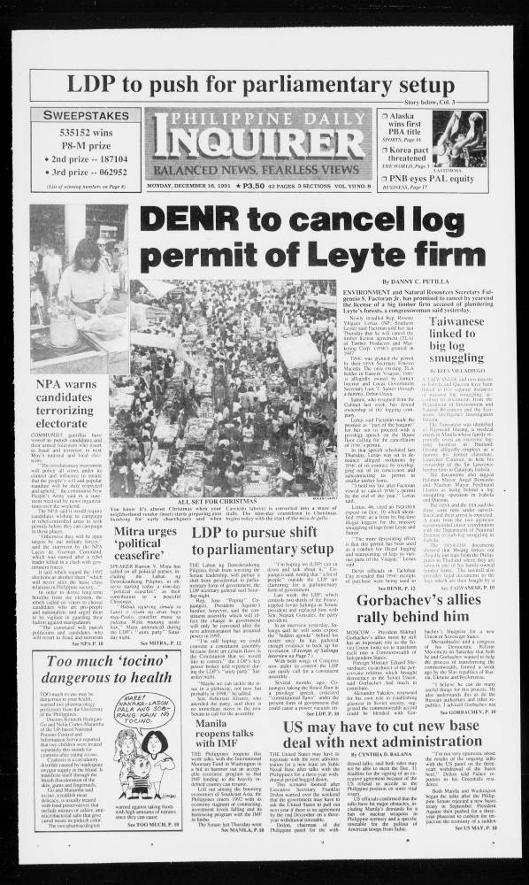 December 16, 1991: DENR to cancel log permit of Leyte firm by Philippine Daily Inquirer December 16, 2024 December 16, 1991. 0 Comments
