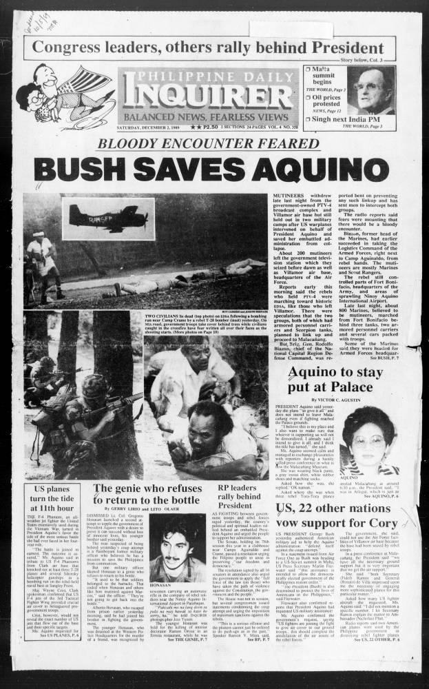 December 2, 1989: Bush saves Aquino by Philippine Daily Inquirer December 2, 2024 December 2, 1989. 0 Comments