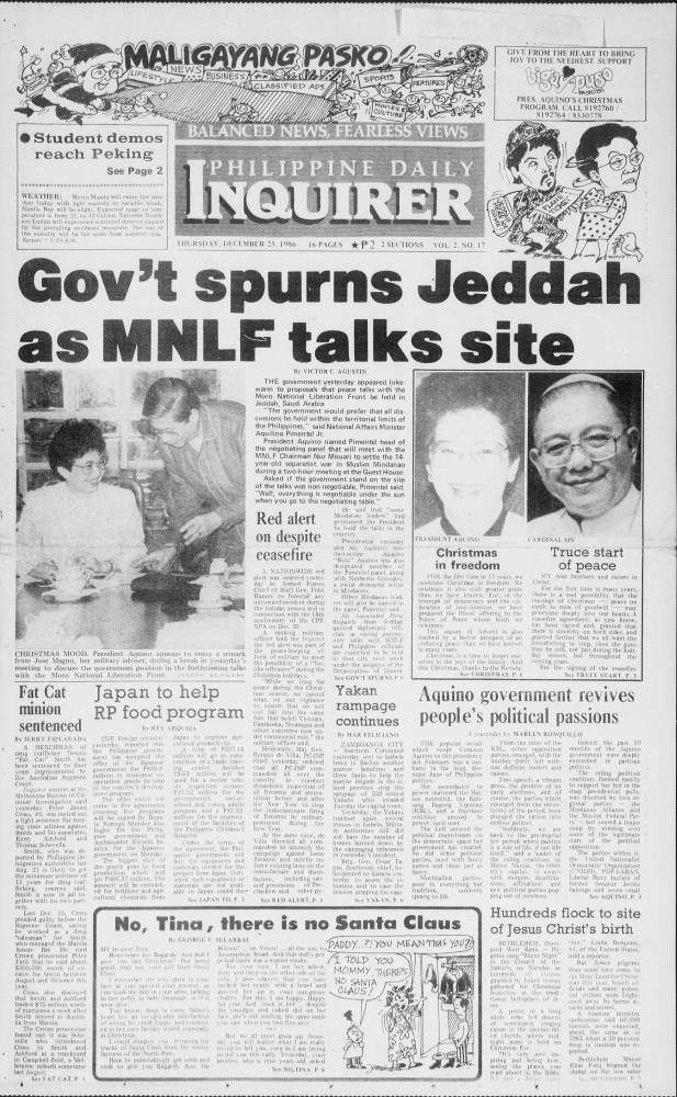 December 25, 1986: Gov’t spurns Jeddah as MNLF talks site by Philippine Daily Inquirer December 25, 2024 0 Comments