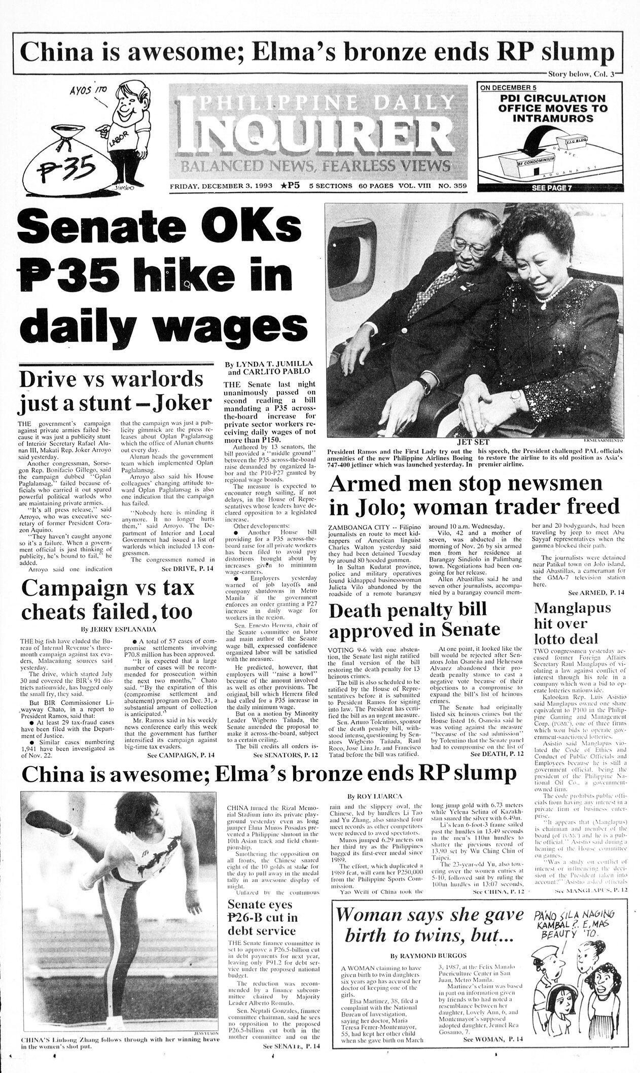 December 3, 1993: Senate OKs P35 hike in daily wages