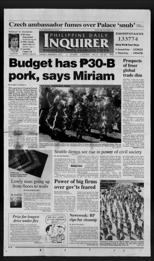 December 6, 1999: Budget has P30-B pork, says Miriam by Philippine Daily Inquirer December 6, 2024 December 6, 1999. 0 Comments