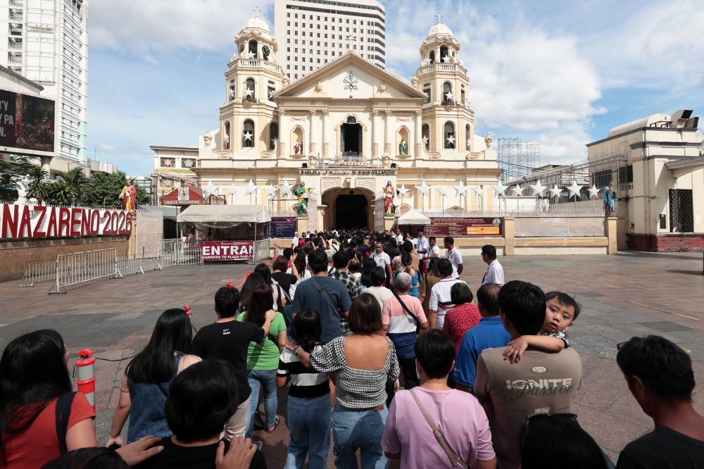 Devotees flocked by the hundreds to the first Sunday Mass for the year held at Quiapo Church in Manila, the home of Jesus Nazareno. As of 10 a.m., the crowd was estimated at around 8,000, according to the Station 3 of the Manila Police District. —WITH A REPORT FROM INQUIRER RESEARCH