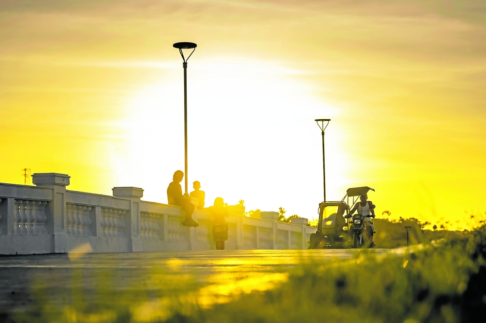 SUNSET VIEW Some residents of Iloilo City watch the sunset from the Iloilo River North Bank Road in this photo taken on Jan. 17. Also called Sunset Boulevard, the four-lane road with paved sidewalk and bike lane was constructed through the help of former Senate President Franklin Drilon and was officially opened on Friday. —IAN PAUL CORDERO