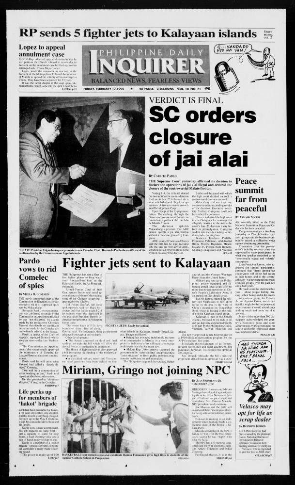 February 17, 1995: SC orders closure of jai alai by Philippine Daily Inquirer February 17, 2024 February 17, 1995. 0 Comments