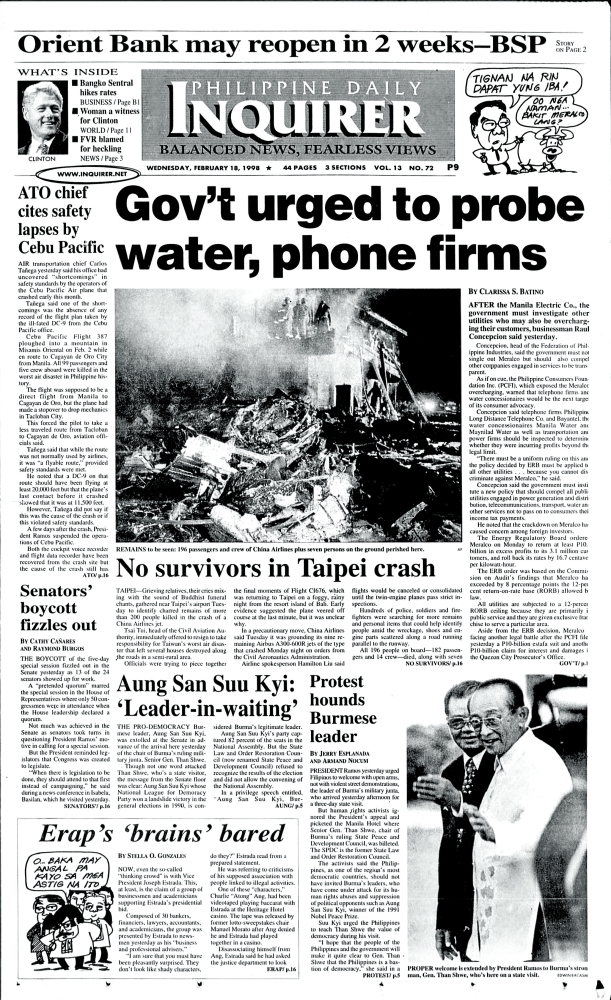 February 18, 1998: Gov’t urged to probe water, phone firms by Philippine Daily Inquirer February 18, 2026