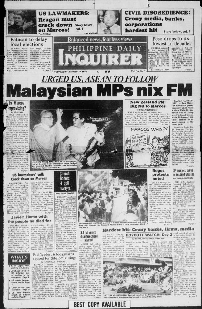 February 19, 1986: Malaysian MPs nix FM