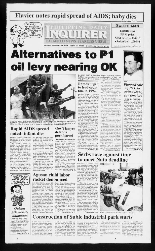 February 21, 1994: Alternatives to P1 oil levy nearing OK by Philippine Daily Inquirer February 21, 2025 February 21, 1994. 0 Comments