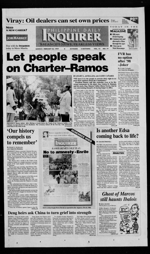 February 23, 1997: Let people speak on Charter —Ramos by Philippine Daily Inquirer February 23, 2024 February 23, 1997. 0 Comments