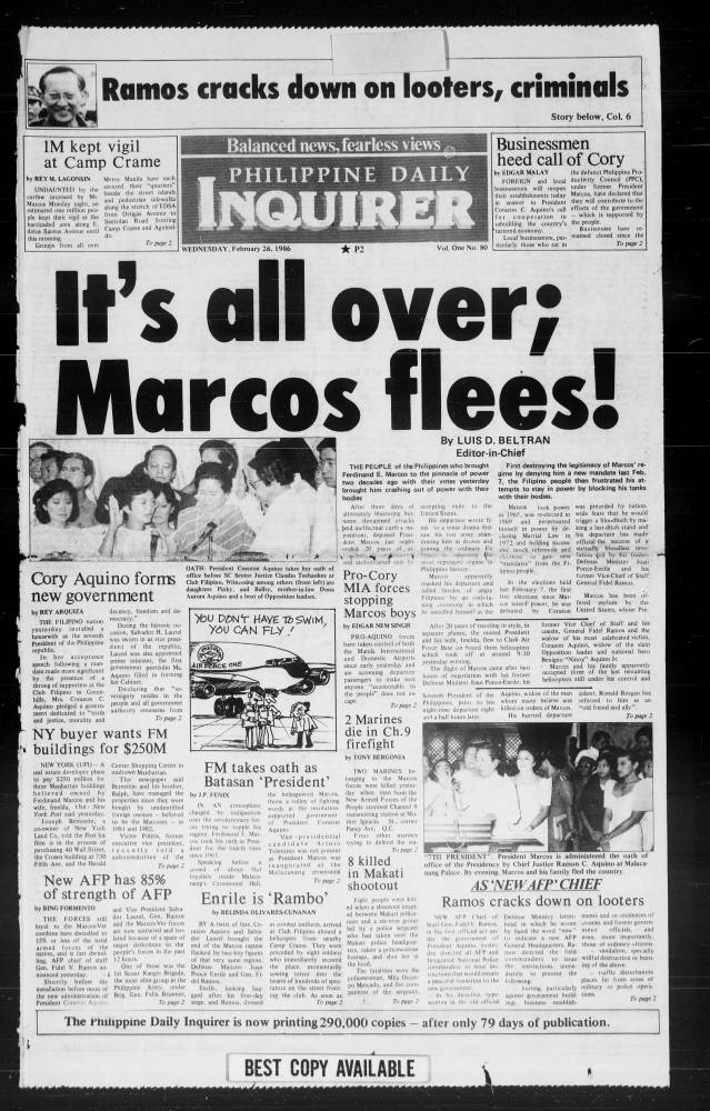 February 26, 1986: It’s all over; Marcos flees! by Philippine Daily Inquirer February 26, 2025 February 26, 1986. 0 Comments