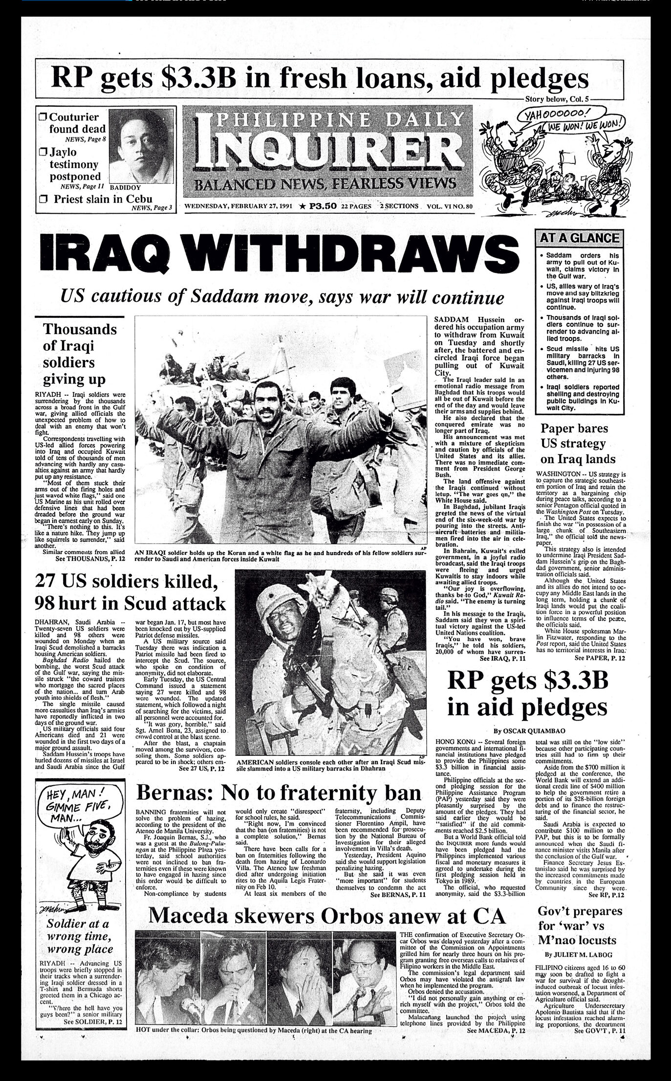 February 27, 1991: IRAQ WITHDRAWS