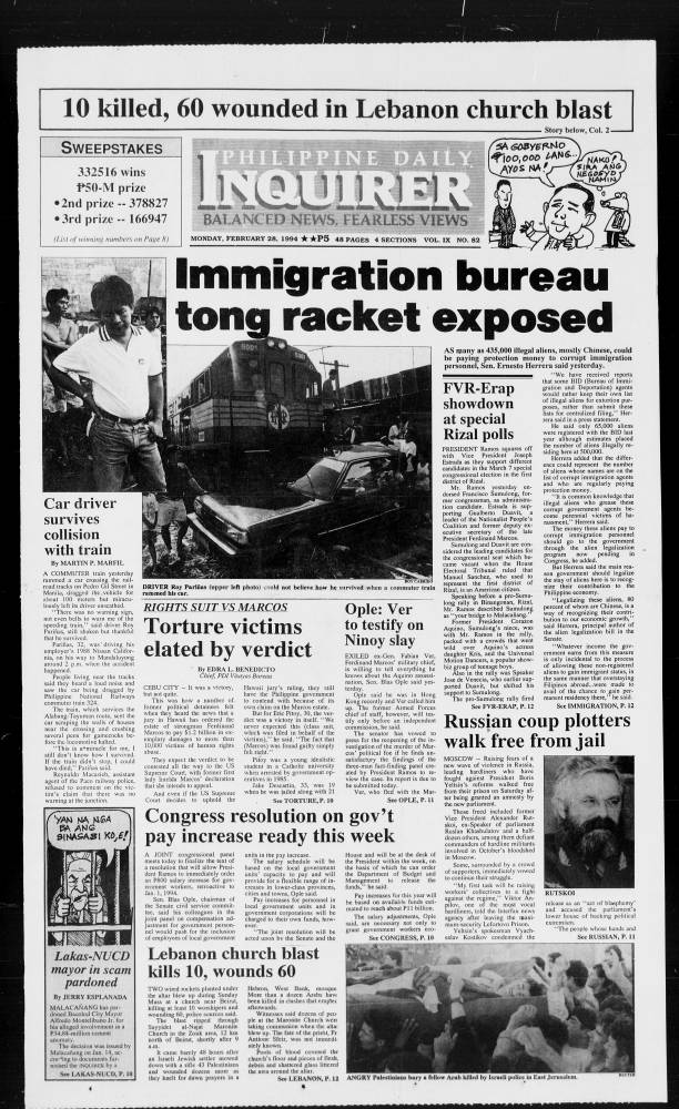 February 28, 1994: Immigration bureau tong racket exposed by Philippine Daily Inquirer February 28, 2025 February 28, 1994. 0 Comments