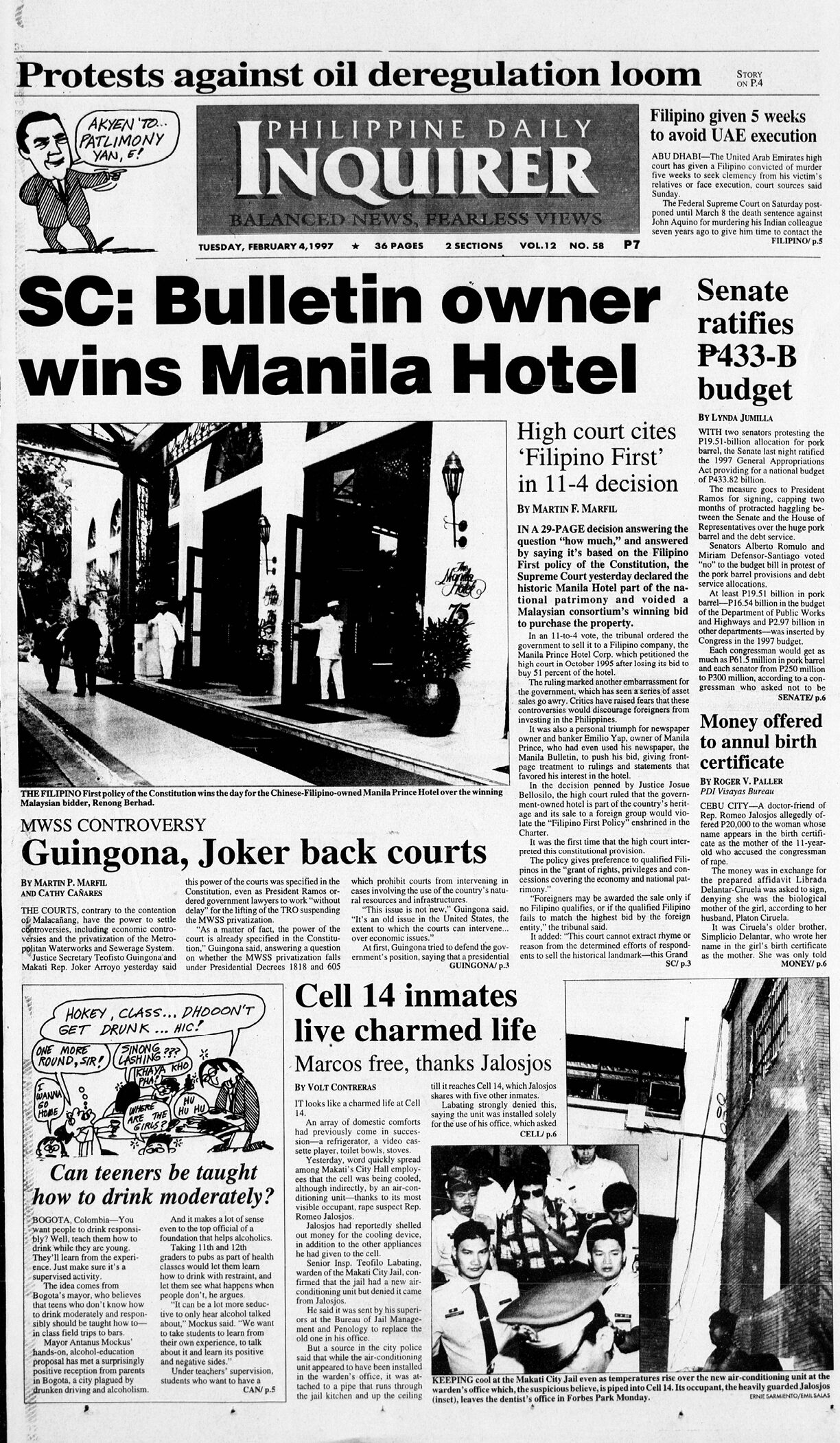 February 4, 1997: SC: Bulletin owner wins Manila Hotel