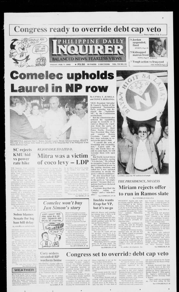 February 7, 1992: Comelec upholds Laurel in NP row by Philippine Daily Inquirer February 7, 2025 February 7, 1992. 0 Comments