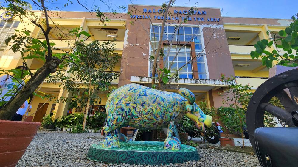 From beside the driveway, Guyito was put in front of the DCNHS’ Special Program for the Arts building, under the trees and where it shares company with creations of the arts students.