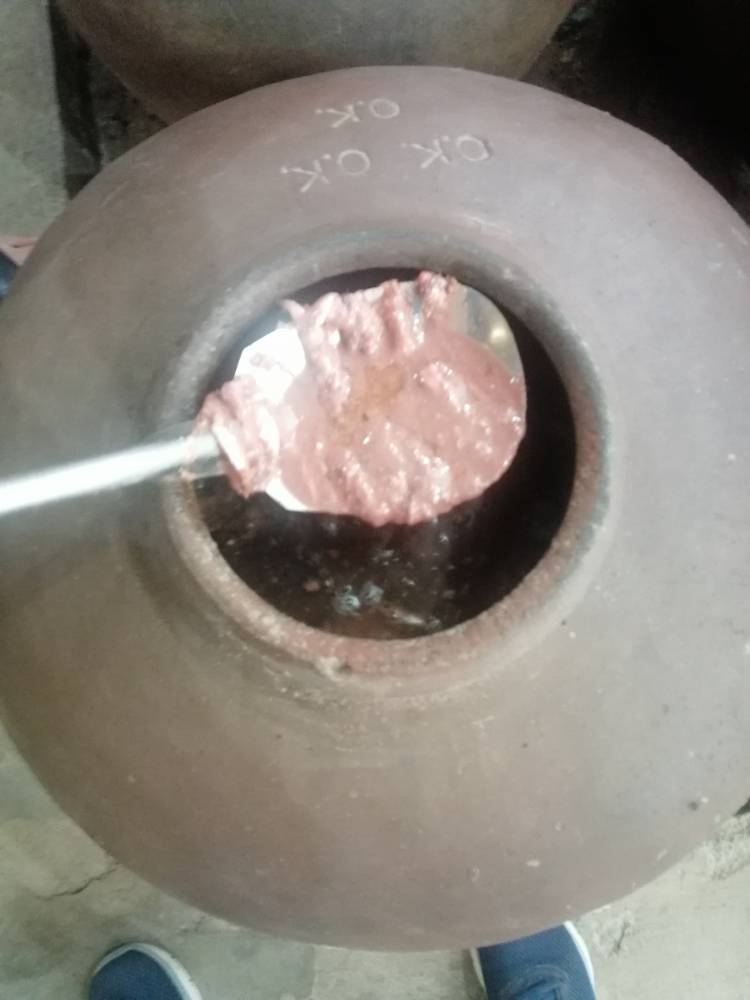 “Iodized salt is never used because it ruins the mixture. We just add a little food coloring to prevent it from turning too black,” he explains.