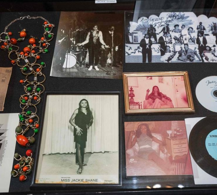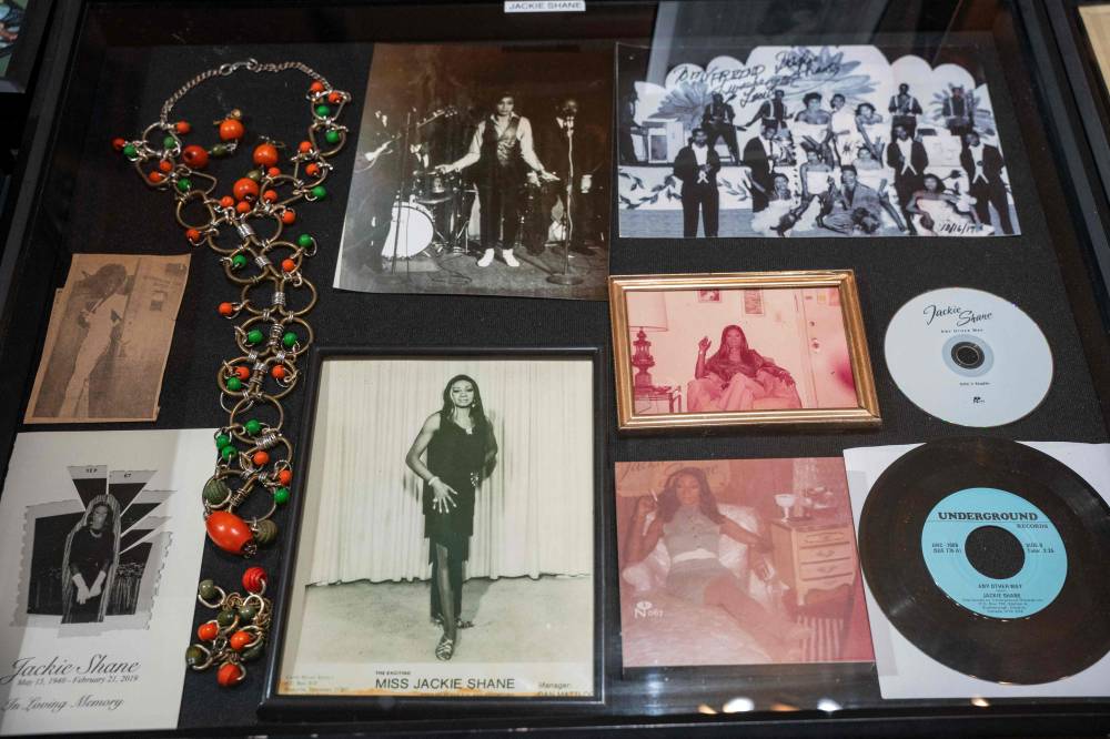 Items, records, and historical photographs of Jackie Shane are displayed at the Jefferson Street Sound museum in Nashville, Tennessee on March 15, 2024. Country music capital Nashville was once also a hotbed of blues, rock and jazz, thanks to a historically Black neighborhood that brought then-budding greats like Jimi Hendrix to town. But Jefferson Street's vibrant community and its robust club scene faced mid-20th century decimation after the construction of an interstate highway slashed it in two, a classic tale of ruinous urban planning that all but extinguished the neighborhood's rich musical legacy. (Photo by SETH HERALD / AFP)