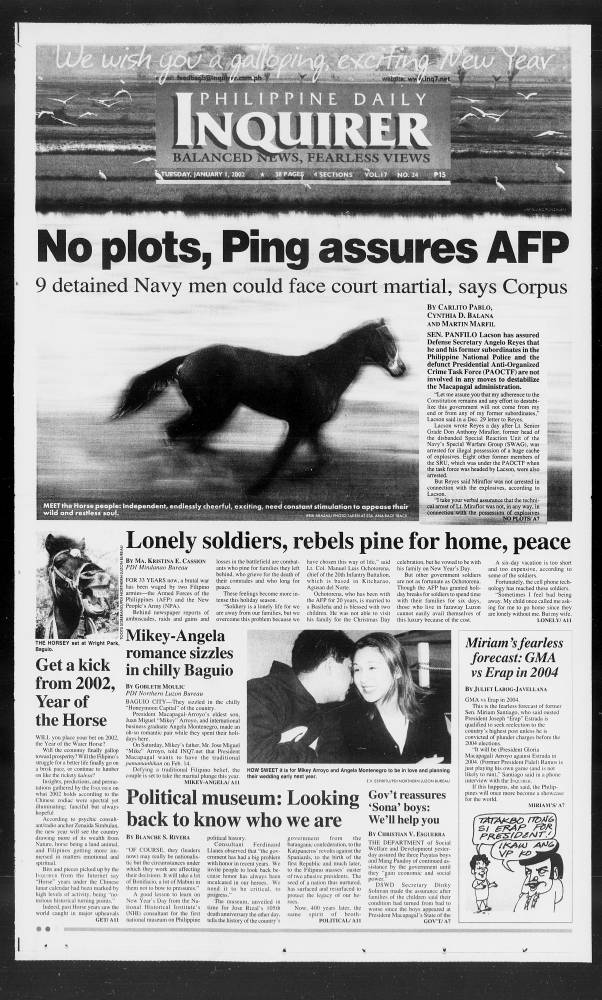 January 1, 2002: No plots, Ping assures AFP by Philippine Daily Inquirer January 1, 2025 January 1, 2002. 0 Comments