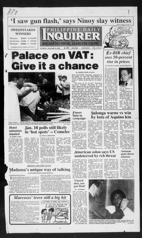 January 12, 1988: Palace on VAT: Give it a chance by Philippine Daily Inquirer January 12, 2024 January 12, 1988. 0 Comments