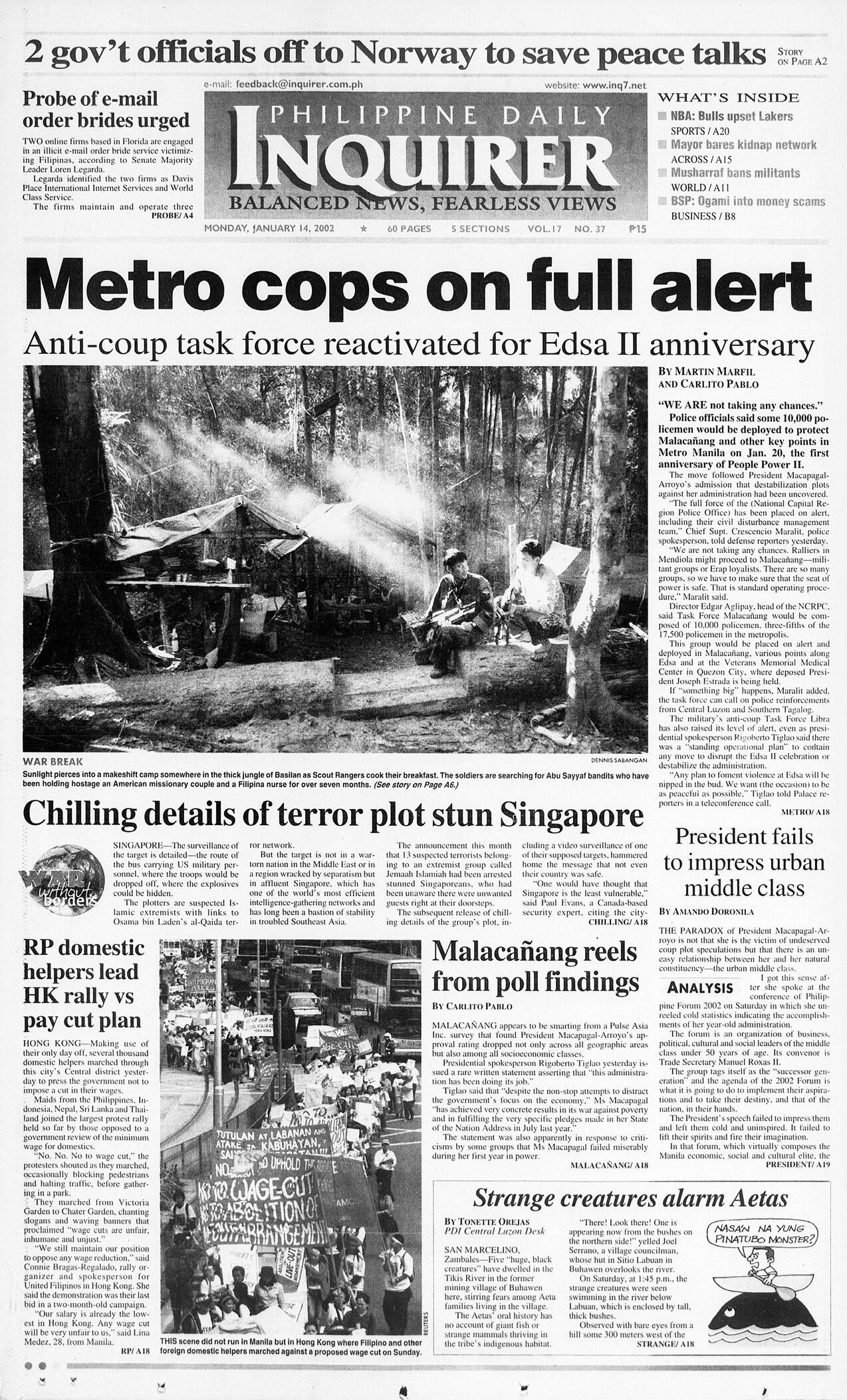 January 14, 2002: Metro cops on full alert