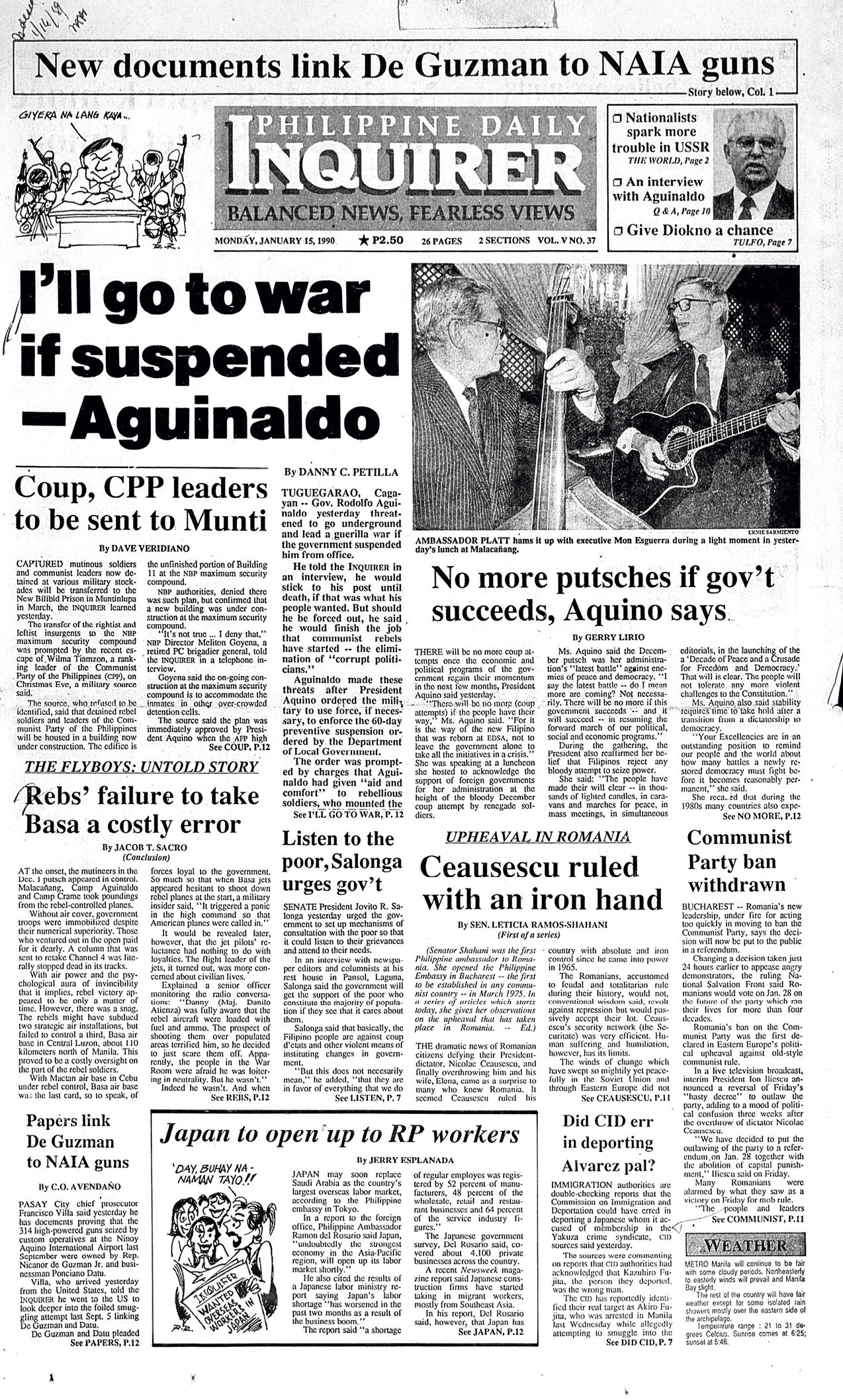 January 15, 1990: I’ll go to war if suspended—Aguinaldo by Philippine Daily Inquirer January 15, 2026