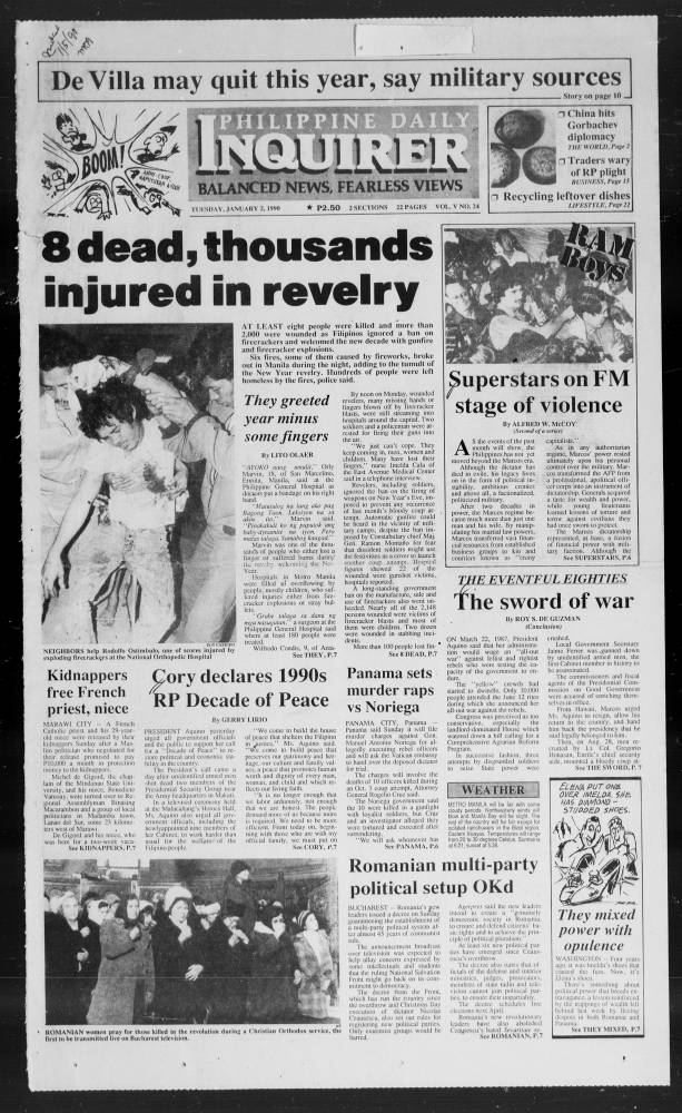 January 2, 1990: 8 dead, thousands injured in revelry by Philippine Daily Inquirer January 2, 2025 0 Comments