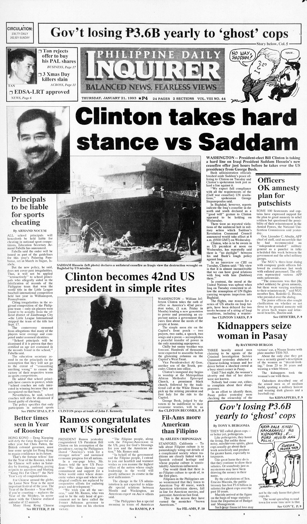 January 21, 1993: Clinton takes hard stance vs Saddam