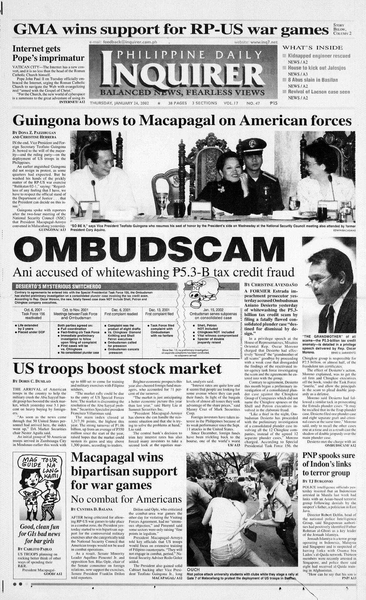 January 24, 2002: Guingona bows to Macapagal on American forces by Philippine Daily Inquirer January 24, 2026