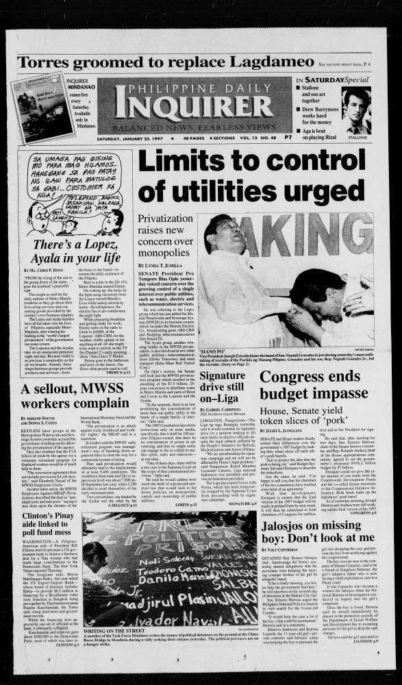 January 25, 1997: Limits to control of utilities urged by Philippine Daily Inquirer January 25, 2024 January 25, 1997. 0 Comments