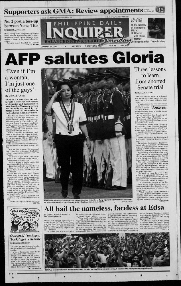 January 28, 2001: AFP salutes Gloria