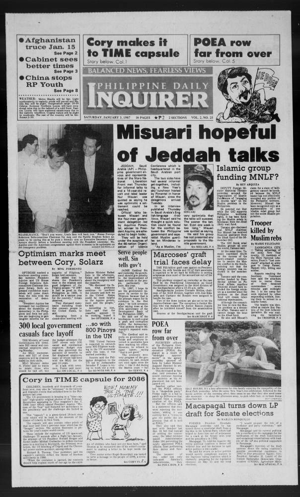 January 3, 1987: Misuari hopeful of Jeddah talks by Philippine Daily Inquirer January 3, 2025 January 3, 1987. 0 Comments
