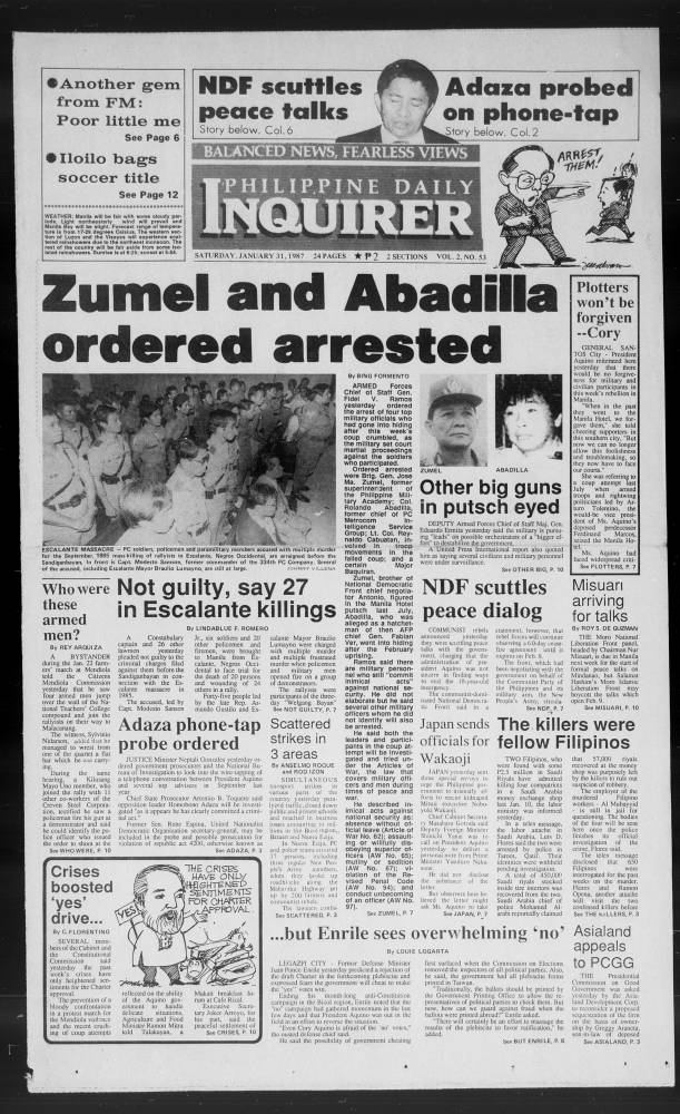January 31, 1987: Zumel and Abadilla ordered arrested