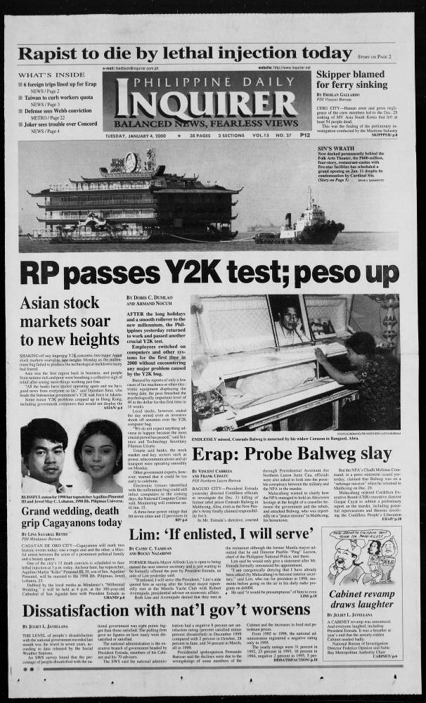 January 4, 2000: RP passes Y2K test; peso up by Philippine Daily Inquirer January 4, 2025 January 4, 2000. 0 Comments