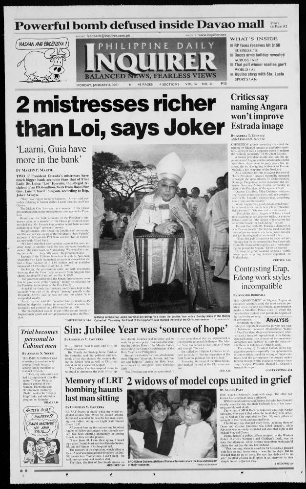January 8, 2001: 2 mistresses richer than Loi, says Joker by Philippine Daily Inquirer January 8, 2025 January 8, 2001. 0 Comments