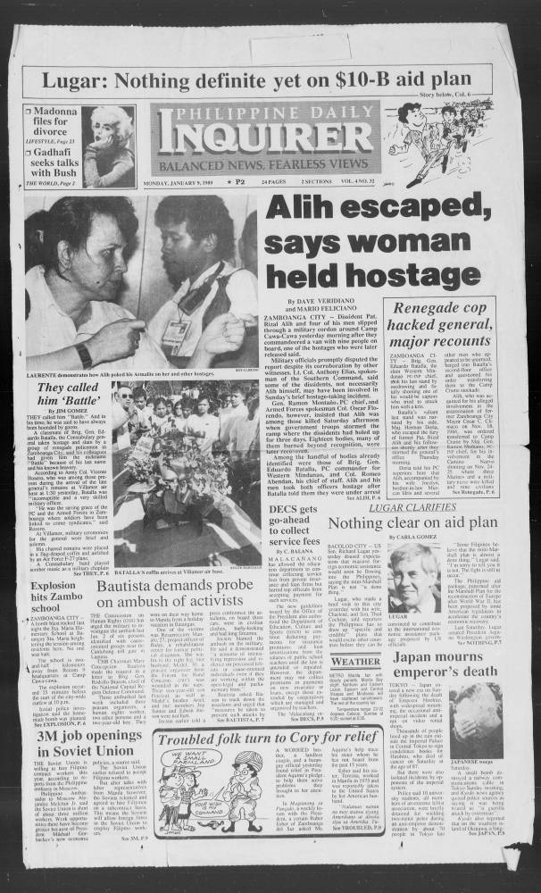 January 9, 1989: Alih escaped, says woman held hostage by Philippine Daily Inquirer January 9, 2025 January 9, 1989. 0 Comments