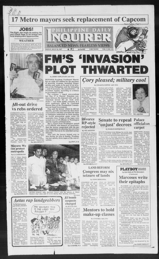 July 10, 1987: FM’s ‘invasion’ plot thwarted by Philippine Daily Inquirer July 10, 2024 July 10, 1987 0 Comments