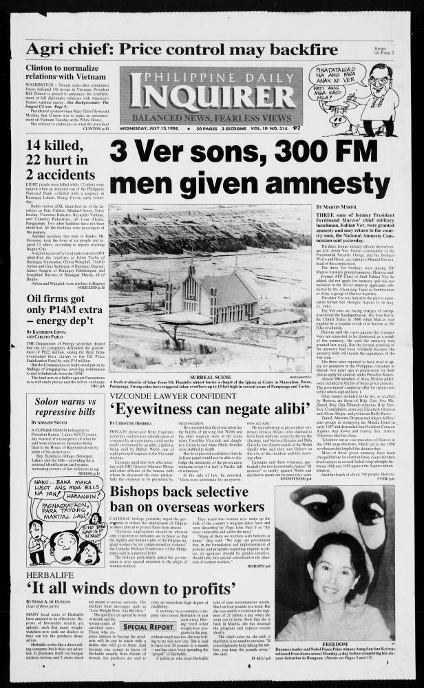 July 12, 1995: 3 Ver sons, 300 FM men given amnesty by Philippine Daily Inquirer July 12, 2024 0 Comments