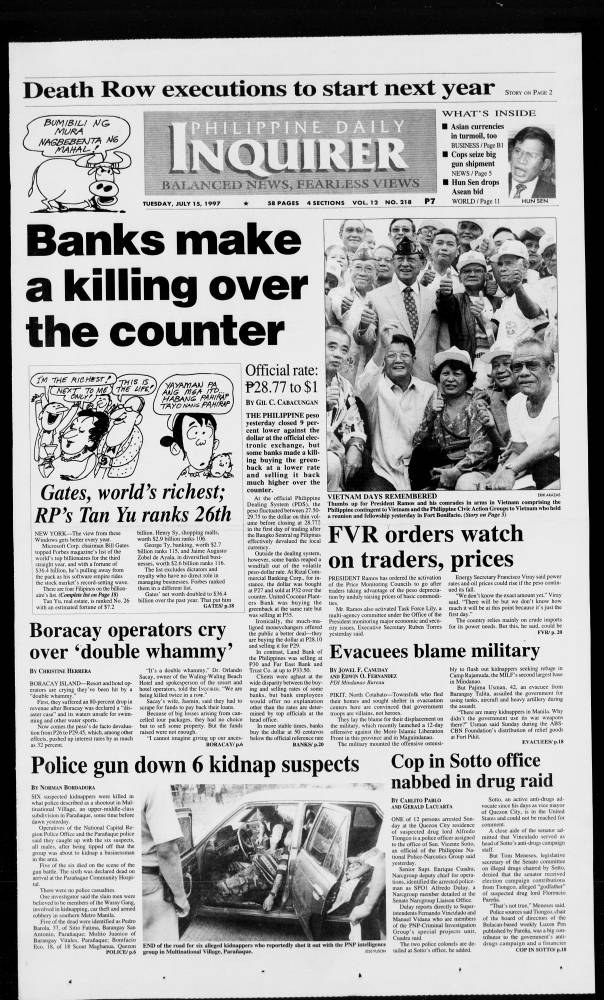 July 15, 1997: Banks make a killing over the counter by Philippine Daily Inquirer July 15, 2024 July 15, 1997 0 Comments
