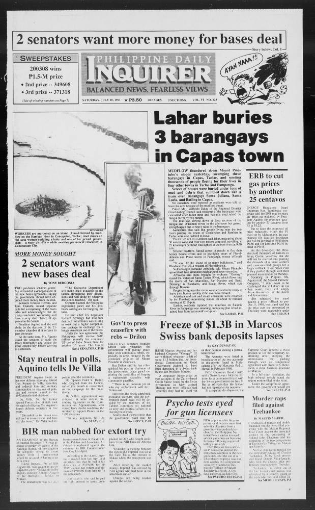 July 20, 1991: Lahar buries 3 barangays in Capas town by Philippine Daily Inquirer July 20, 2024 July 20, 1991 0 Comments