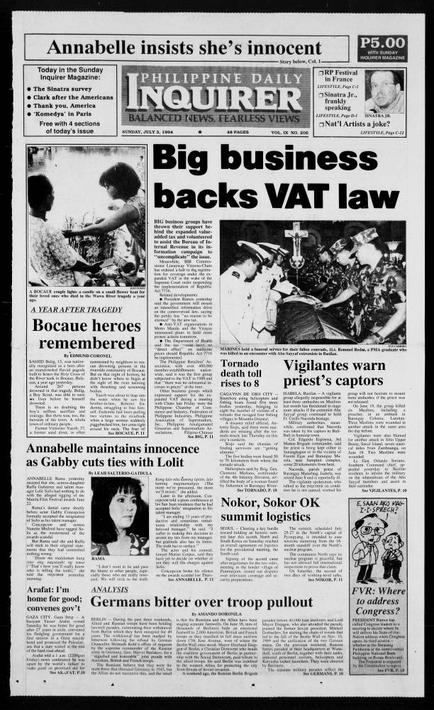 July 3, 1994: Big business backs VAT law by Philippine Daily Inquirer July 3, 2024 July 3, 1994 0 Comments