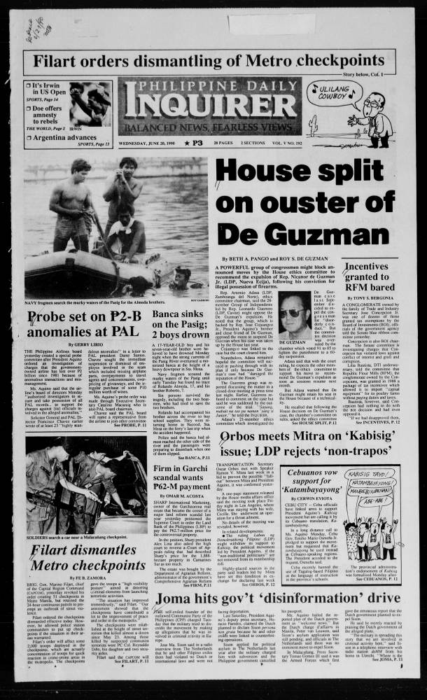 June 20, 1990: House split on ouster of De Guzman by Philippine Daily Inquirer June 20, 2025 June 20, 1990.