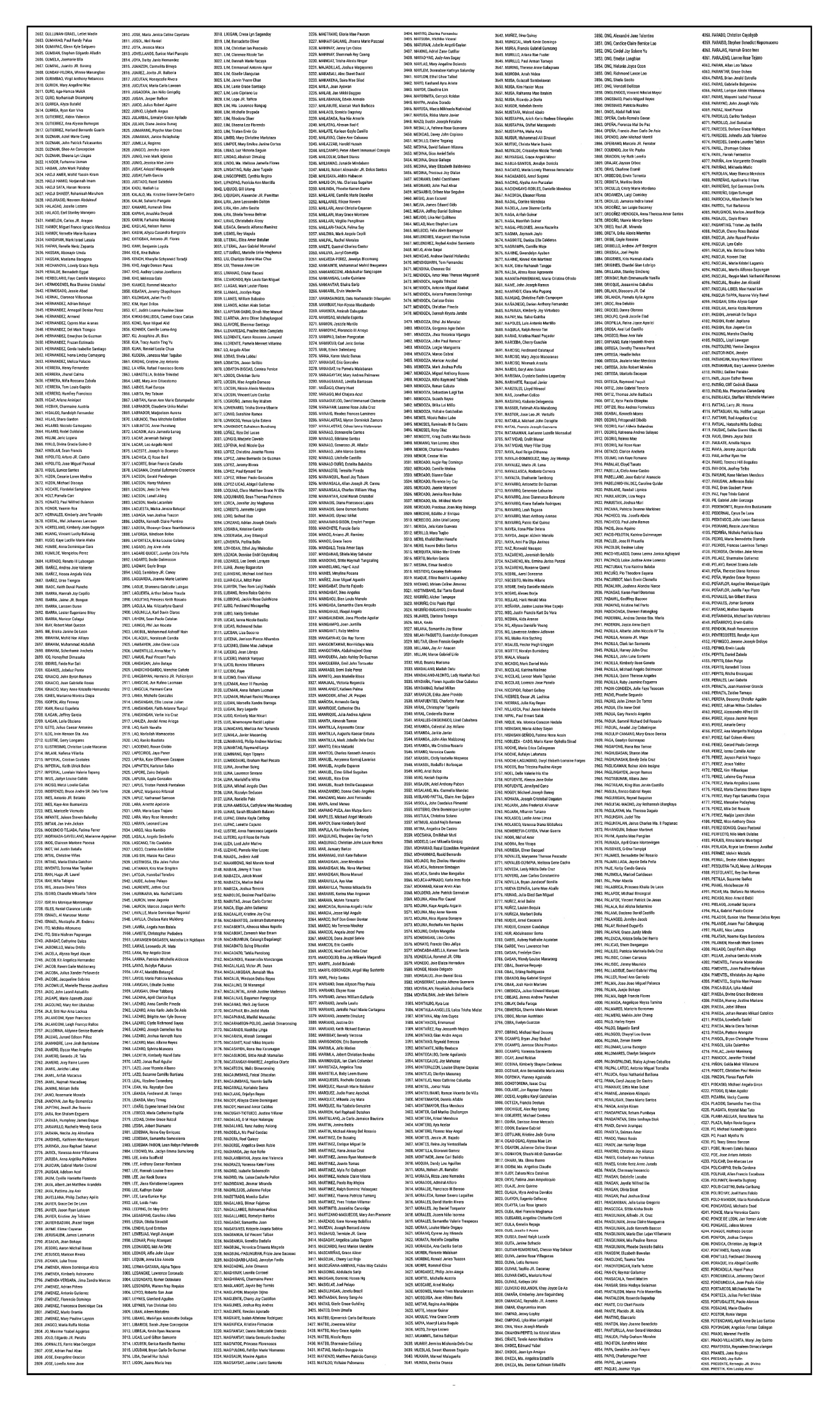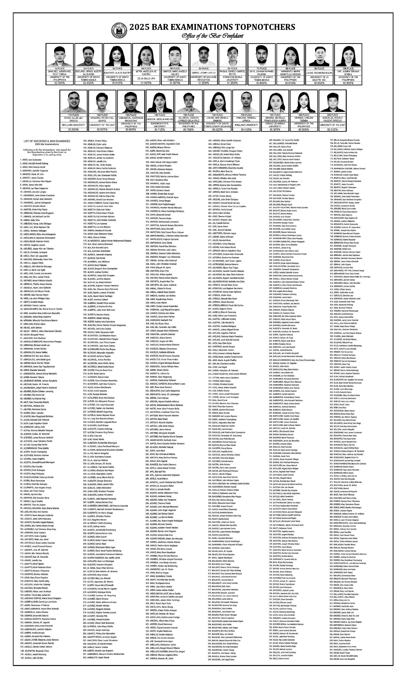 Following is the list of examinees who passed the Bar Examinations given by this Court on September 7, 10, and 14 2025
