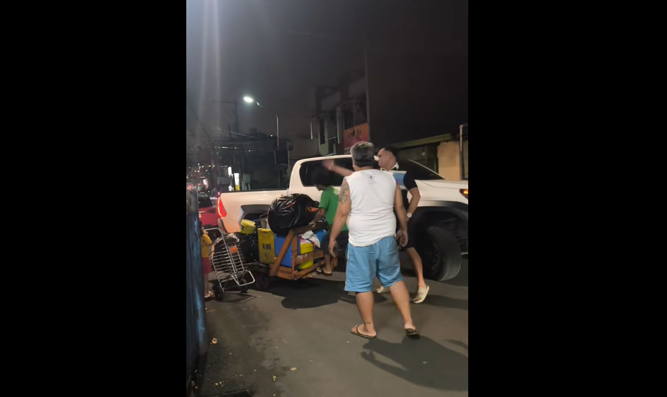 The netizen taking the video can be heard telling the driver not to hurt the pushcart owner. The driver went inside his vehicle and quickly drove away when he noticed that he was being recorded on video.